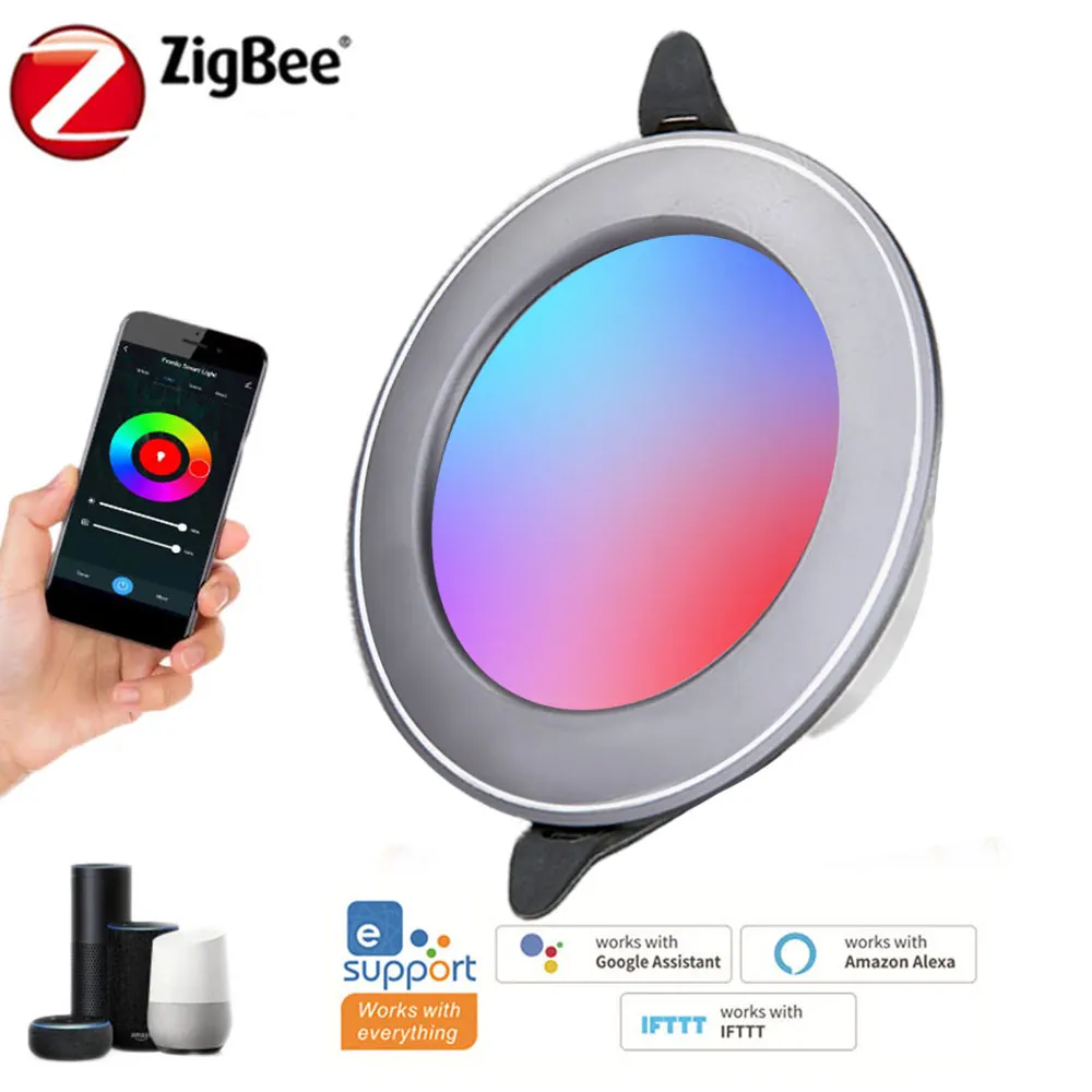 Умный Точечный светильник Tuya Zigbee 3,0, RGB, холодный и теплый белый свет, 9 Вт, встраиваемый потолочный светодиодный светильник с голосовым управлением, работает с Alexa Google Home