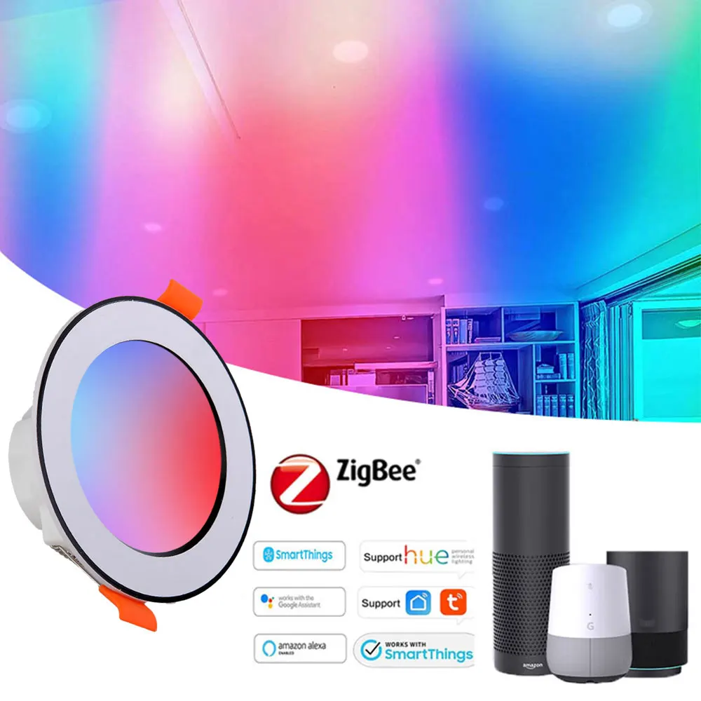 Светодиодный потолочный светильник Tuya Zigbee 3,0, Wi-Fi, регулировка яркости, встраиваемые потолочные светильники 9 Вт, для Alexa, Google Home, Smart Life