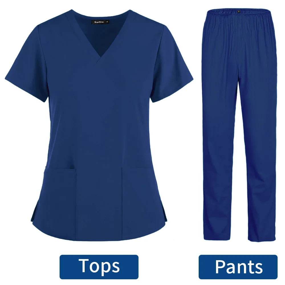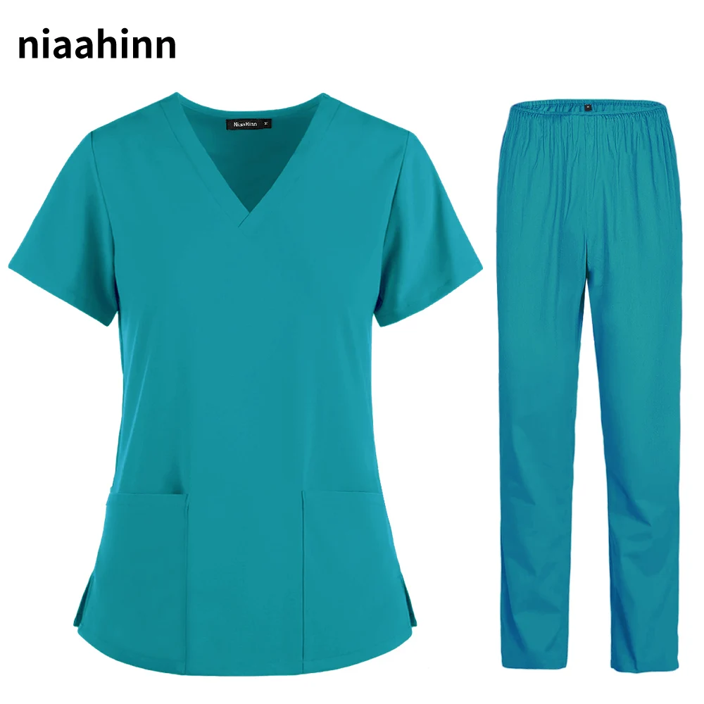 Женская летняя одежда для медсестер, топы с коротким рукавом и V-образным вырезом, Рабочая форма, блузка с карманами, комбинезоны, униформа ветеринарной медсестры, клиника
