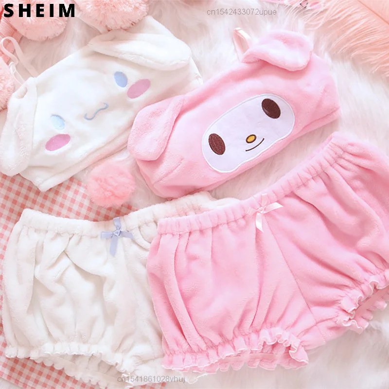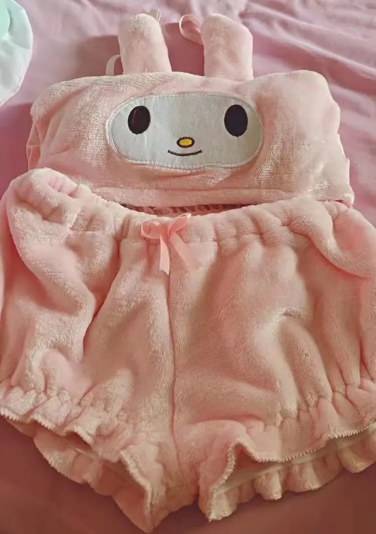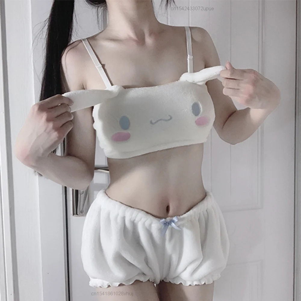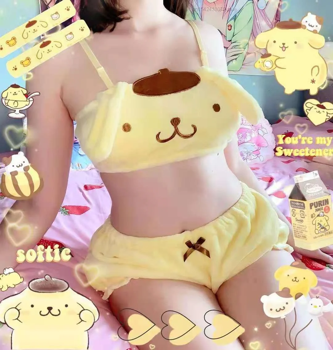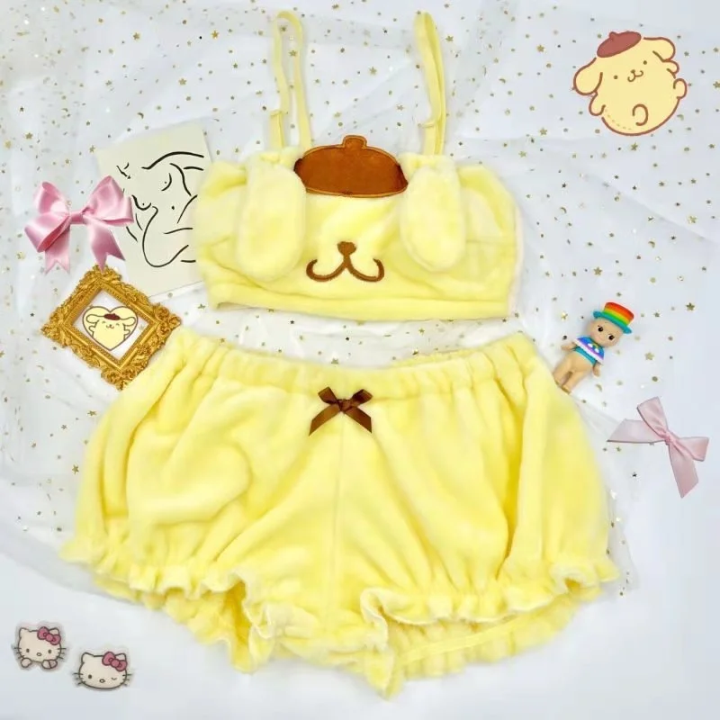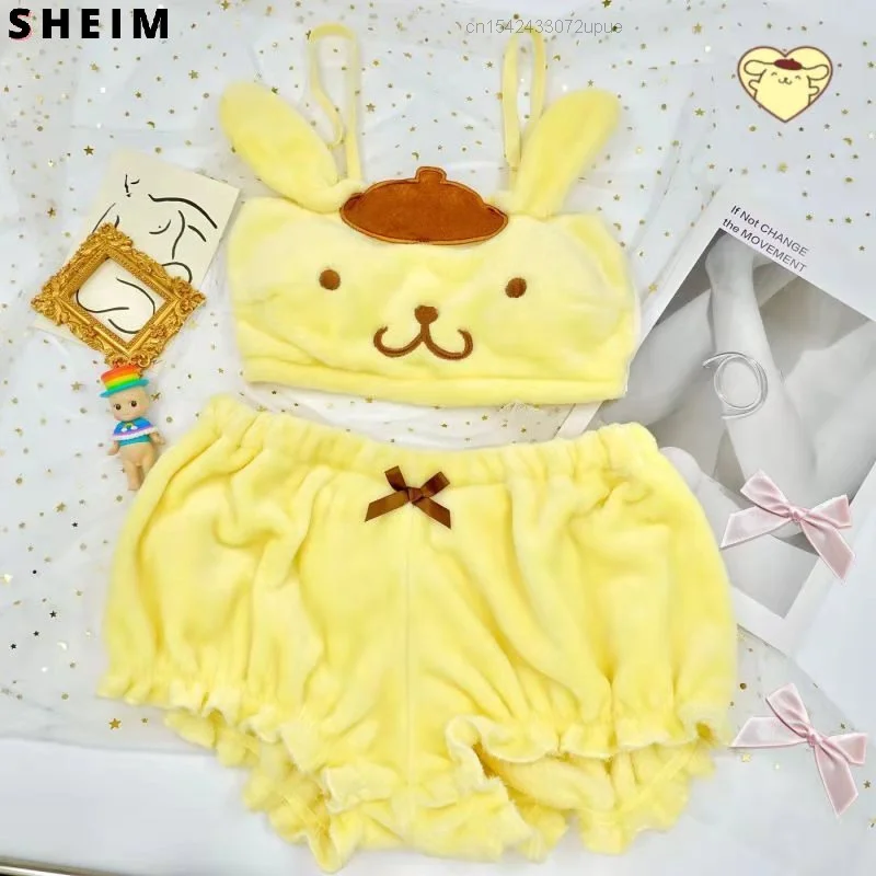 Kawaii Y2k Эстетическая одежда с лямкой через шею сексуальная пижама My Kuromi Melody Cinnamoroll плюшевая Пижама с помпоном пуриновая Пижама комплект топы для девочек в стиле "Лолита"