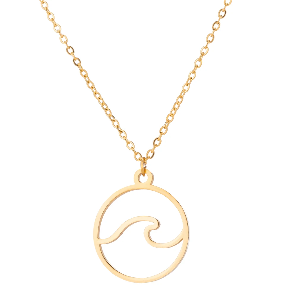Ожерелье из нержавеющей стали с геометрическим рисунком в виде искусственной кожи, корейская мода ручной работы, волнистые пляжные украшения, подарки для женщин, Прямая поставка