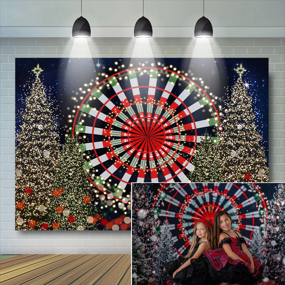 Рождественский фон с изображением колеса обозрения для фотосъемки детей портрет новогодняя елка снежинка реквизит для малышей Детская фотостудия для девочек