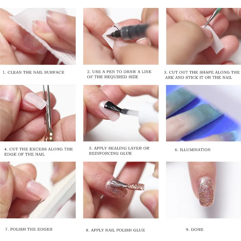 Шелковая шелковая обертка из стекловолокна для ремонта ногтей, само...