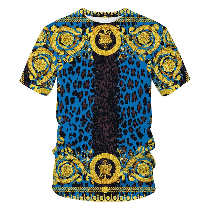 Футболка Мужскаяженская оверсайз в стиле барокко, тенниска с 3D-принтом головы льва и короны, с круглым вырезом и короткими рукавами, лето 2021