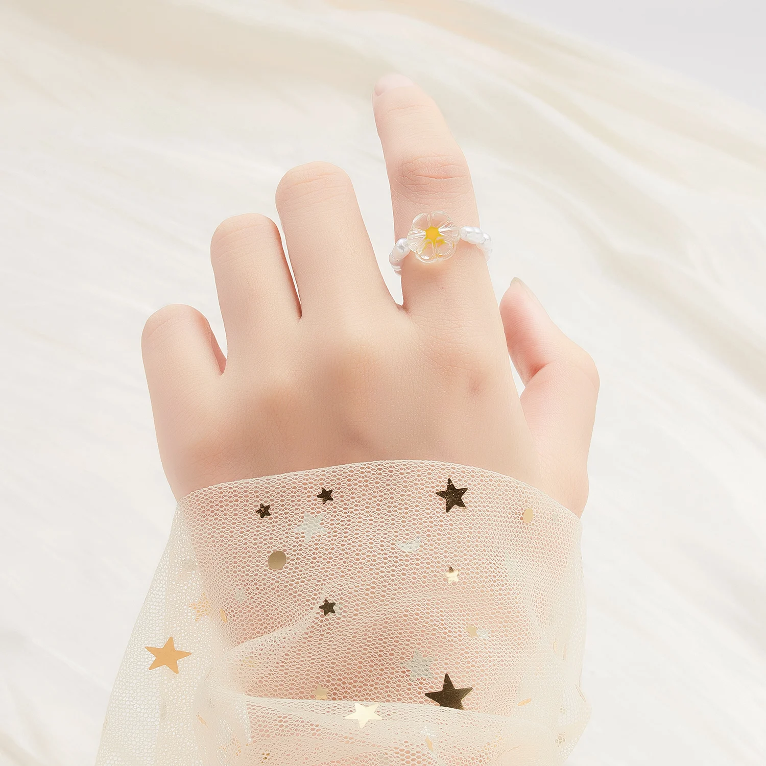 Имитация жемчуга кристалл цветок бисера эластичное кольцо элегантное великолепное регулируемое Открытое кольцо ювелирные аксессуары юбилейные подарки