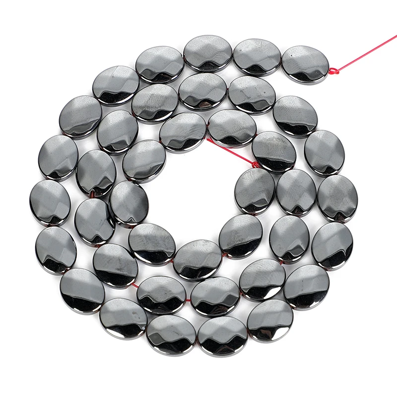Плоские Овальные черные гематитовые бусины из натурального камня, б...