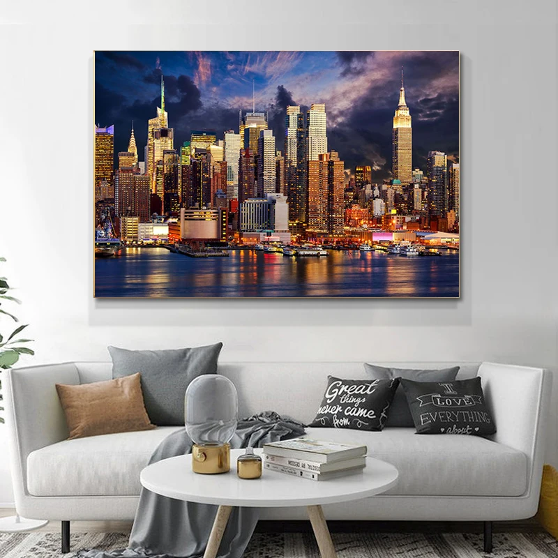 Плакаты в стиле здания Нью-Йорка, Манхэттена, закат, облако, настенные картины, картина на стену для гостиной, домашний декор, без рамки