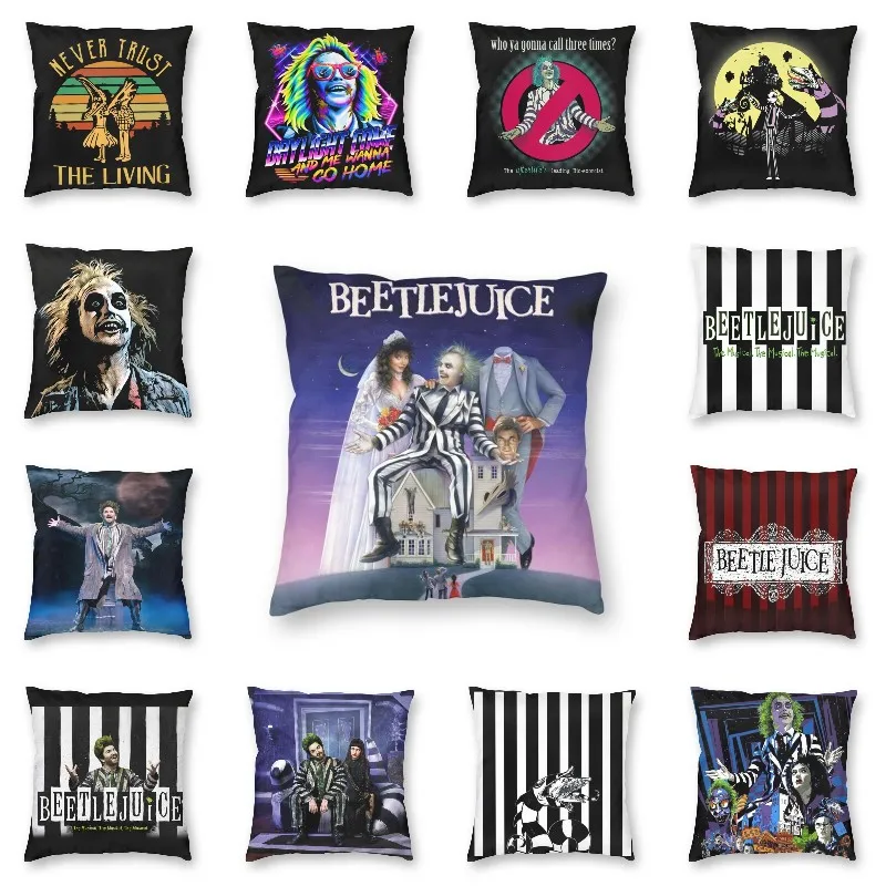 Наволочка для подушки от Beetlejuice, двусторонняя наволочка с принтом Тима Бёртона из фильма ужасы, наволочка для автомобиля, крутая наволочка для подушки, домашний декоративный чехол