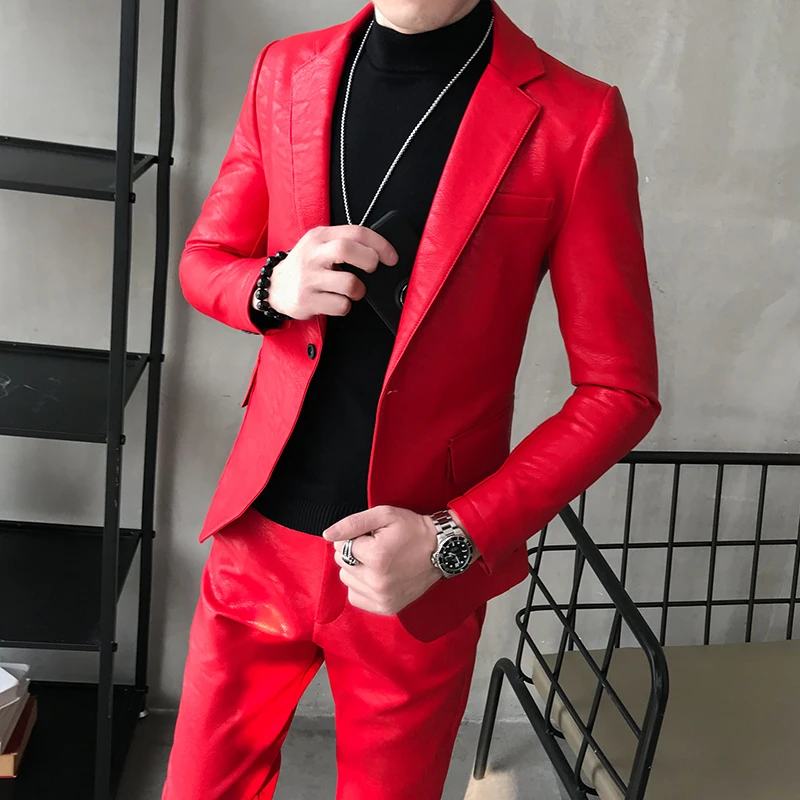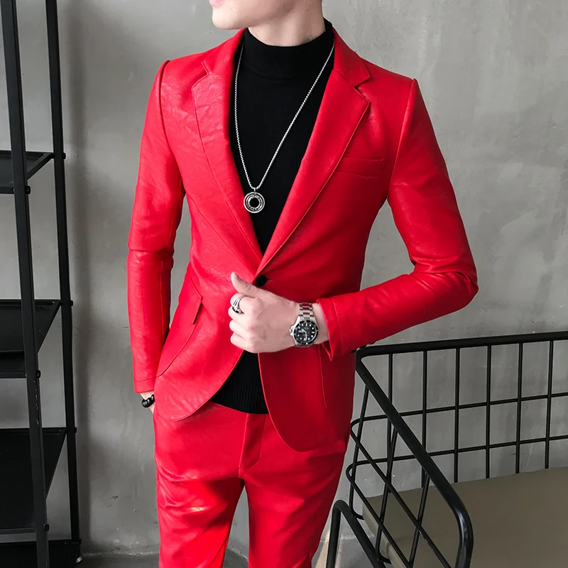2021 Модный Новый мужской повседневный эксклюзивный костюм кожаная ...
