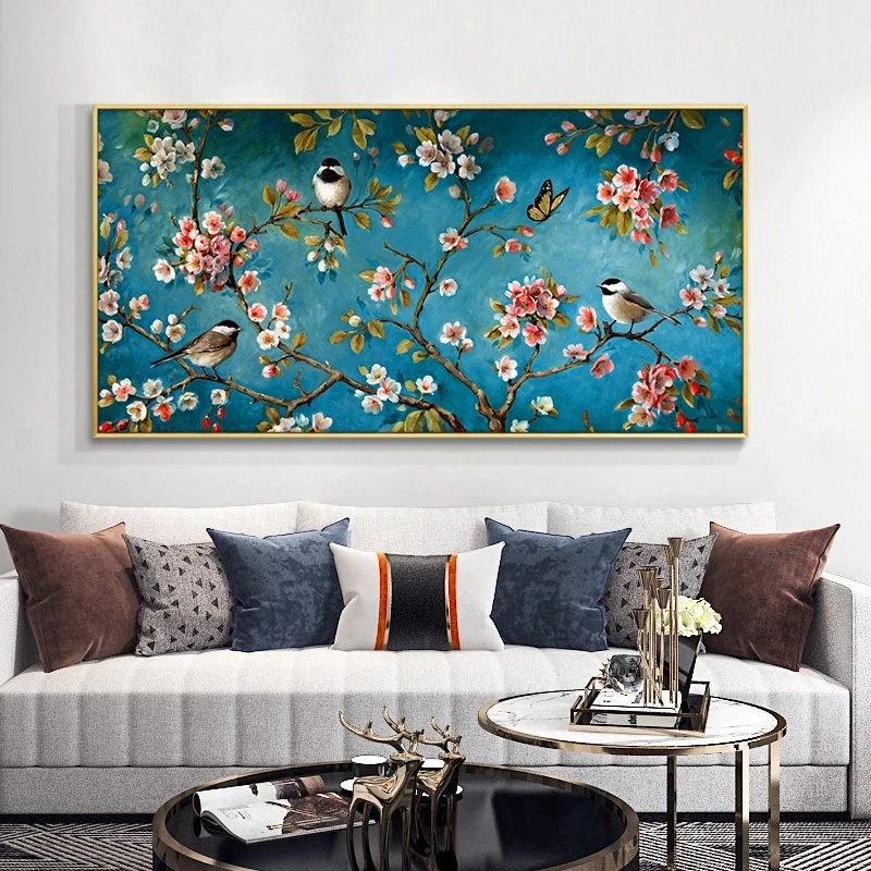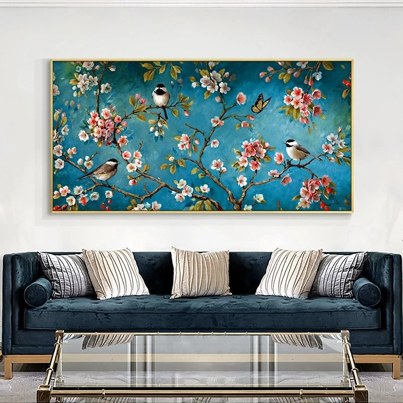Постеры в китайском стиле с принтом цветов и птиц, Картина на холсте, Куадрос, классическое настенное искусство, холст, картина, декор для гостиной