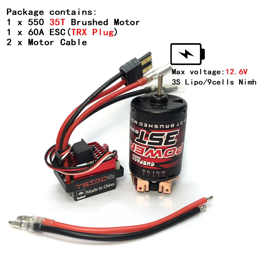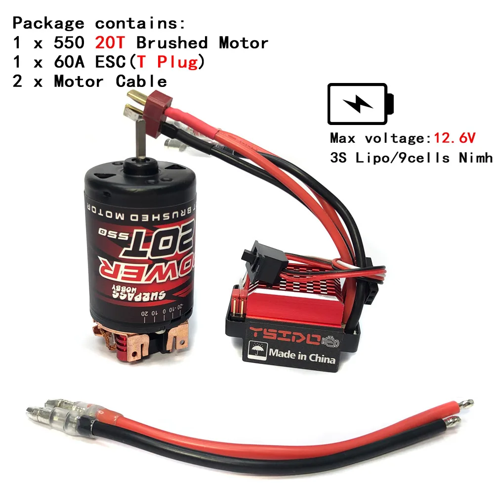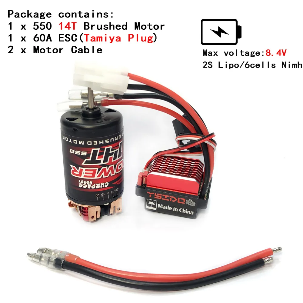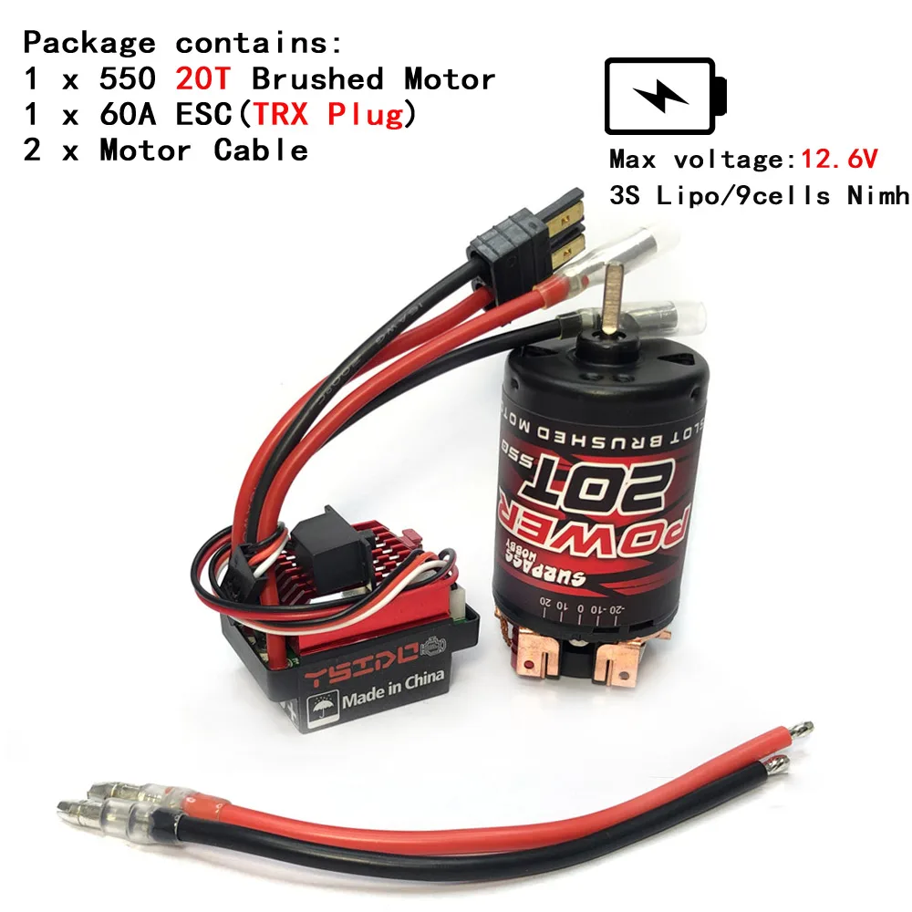 Щеточный двигатель 550 3-Solt 12T 14T 20T 25T 30T 35T 60A ESC для 110 Wltoys 144001 104001 124019 Axial SCX10 90046 Traxxas TRX-4