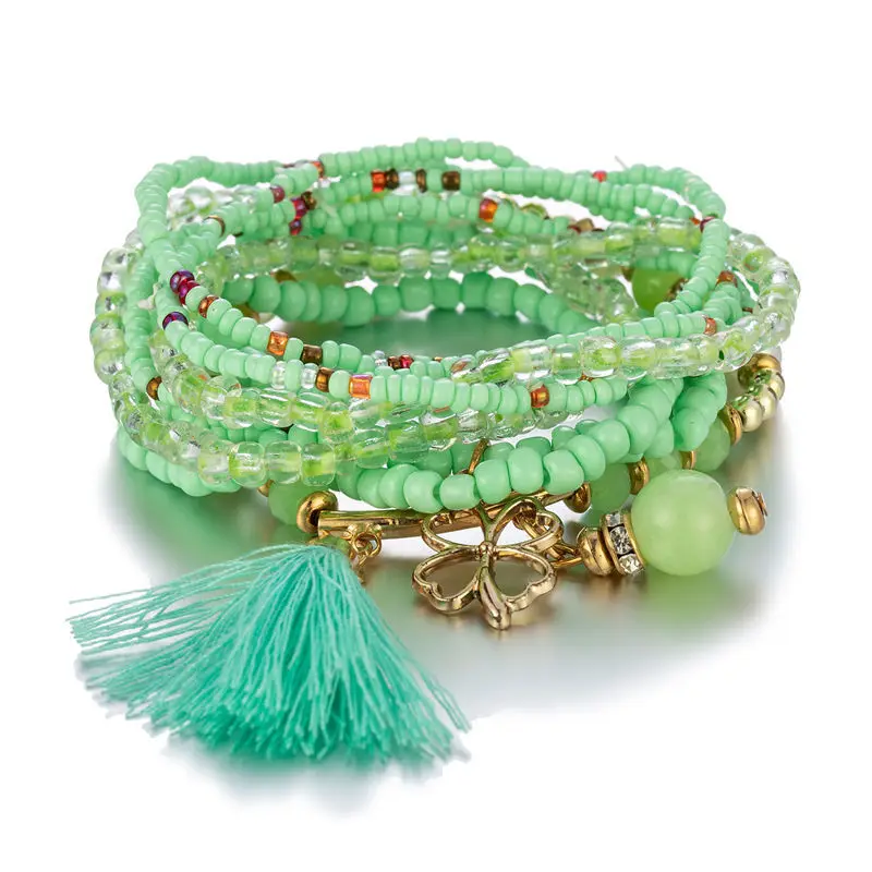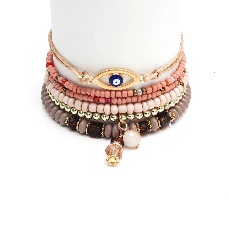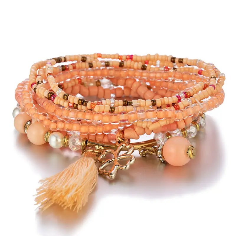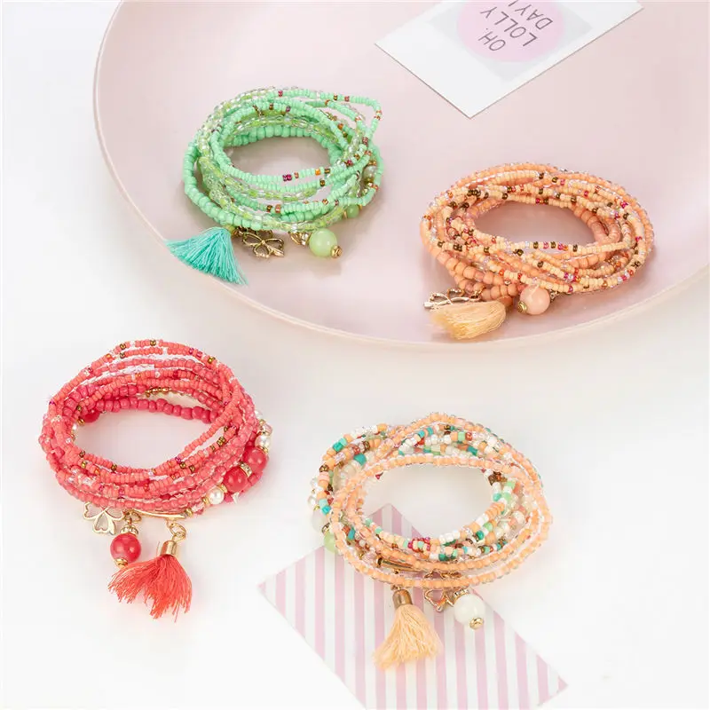 6 шт./партия Многослойные цветные африканские бусы, браслеты, набор для женщин, этнический браслет в стиле бохо, браслеты для девочек, аксессуары для ручных ювелирных изделий