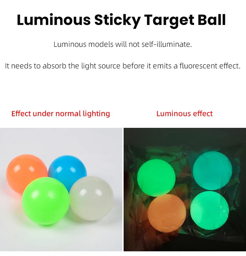 Забавный клейкий шар, 4 шт., светящийся потолочный шар, флуоресцентный клейкий шар-мишень, детский шар Дартс