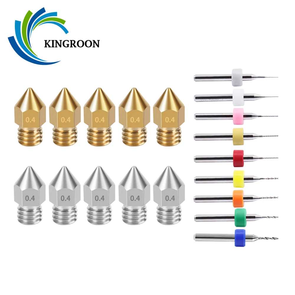 KINGROON 20 шт. MK8 сопла Hotend M6 резьба mk8 латунные сопла из нержавеющей стали 3D принтер 10 шт. Чистящая игла для CR10 Ender-3