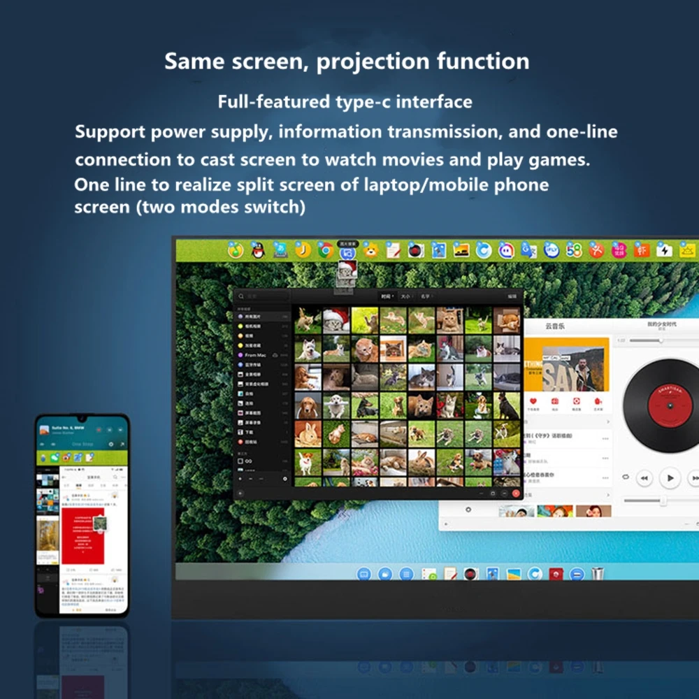 О: портативный монитор поддерживает только ноутбук Thunder TYPE-C с помощью TYPE-C-кабеля.
