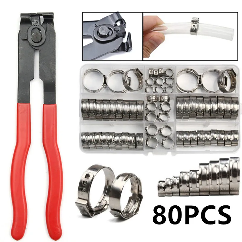80 шт. одноушные плавные зажимы для шланга 5,8-23,5 мм 304, зажимы для шланга из нержавеющей стали, зажимы, плоскогубцы, комплекты для ремонта автомобиля