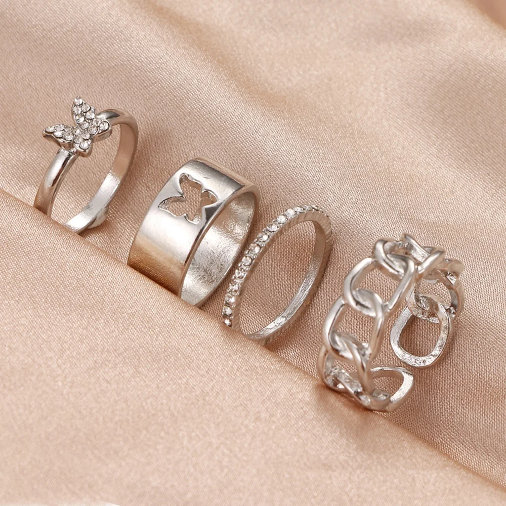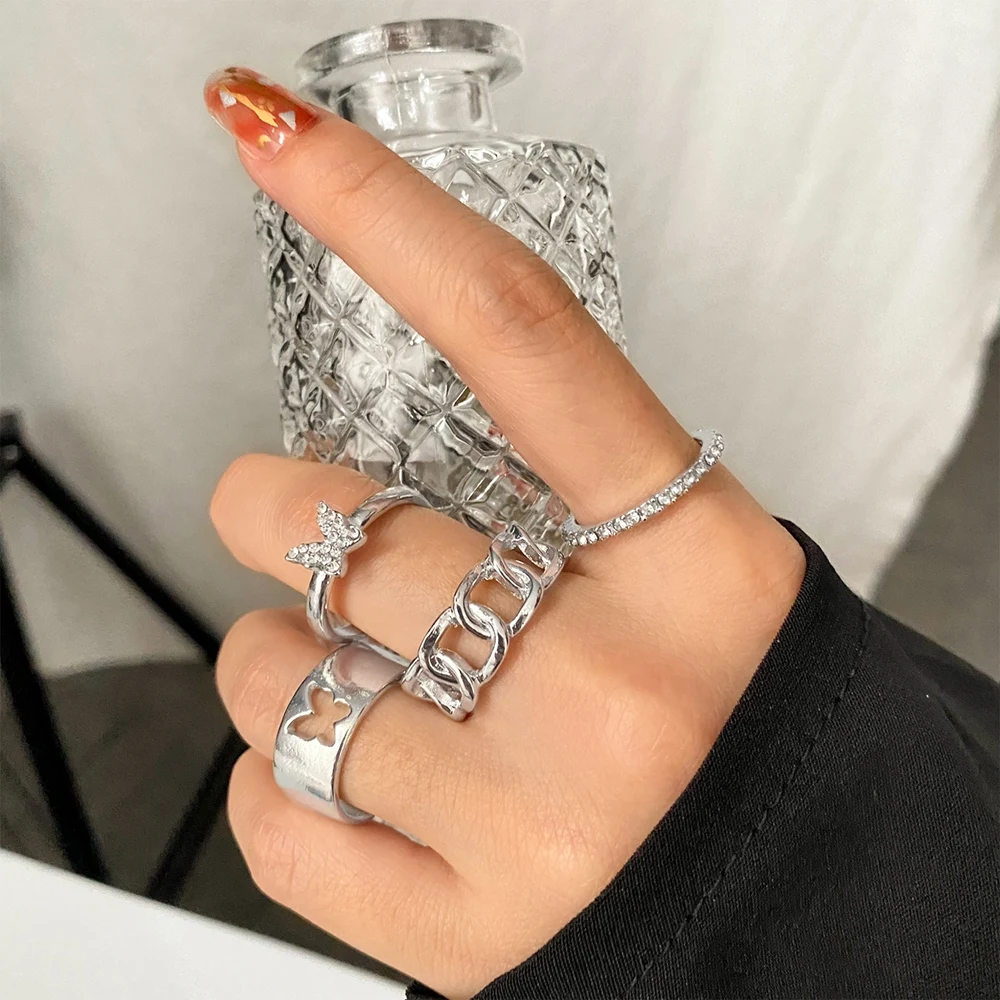 FAMSHIN Новый набор колец с бабочками в стиле панк для женщин и девочек, серебряного цвета, открытое кольцо, совместное кольцо, кольца в стиле хип-хоп, для вечеринки, готические украшения, подарок