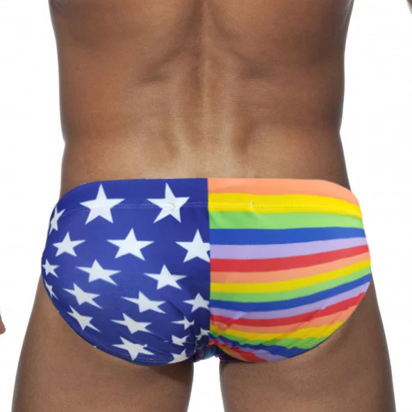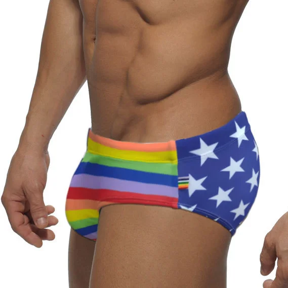 UXH сексуальные радужные брифы для мужчин, мужские плавки, бикини пуш-ап, мужские плавки, пляжный купальный костюм для серфинга, Короткие