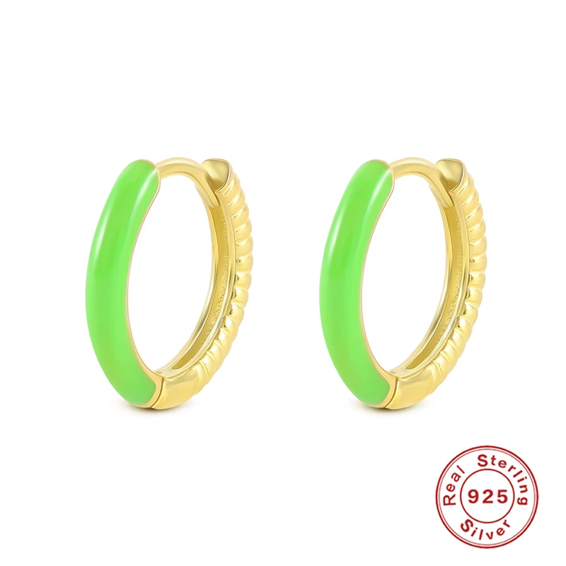 MC карамельных цветов Эмаль Huggie серьги для девочки 925 стерлингового серебра женские серьги-обручи 2021 новый зеленый розовый оранжевый желтый Pendientes