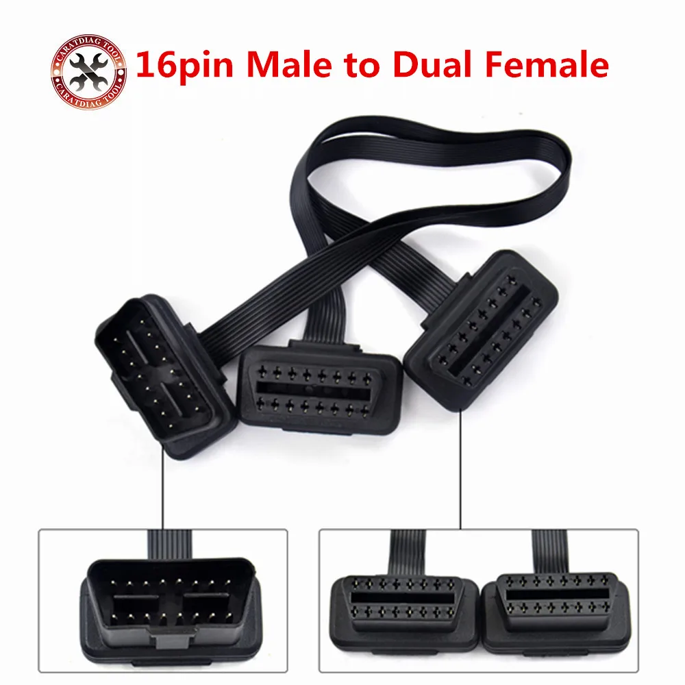 Двойной Женский Y-разветвитель угловой 16-контактный OBD 2 удлинитель ODB OBD2 кабель 16-контактный штекер-гнездо плоский удлинитель OBD2