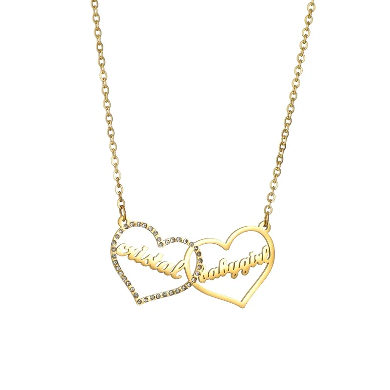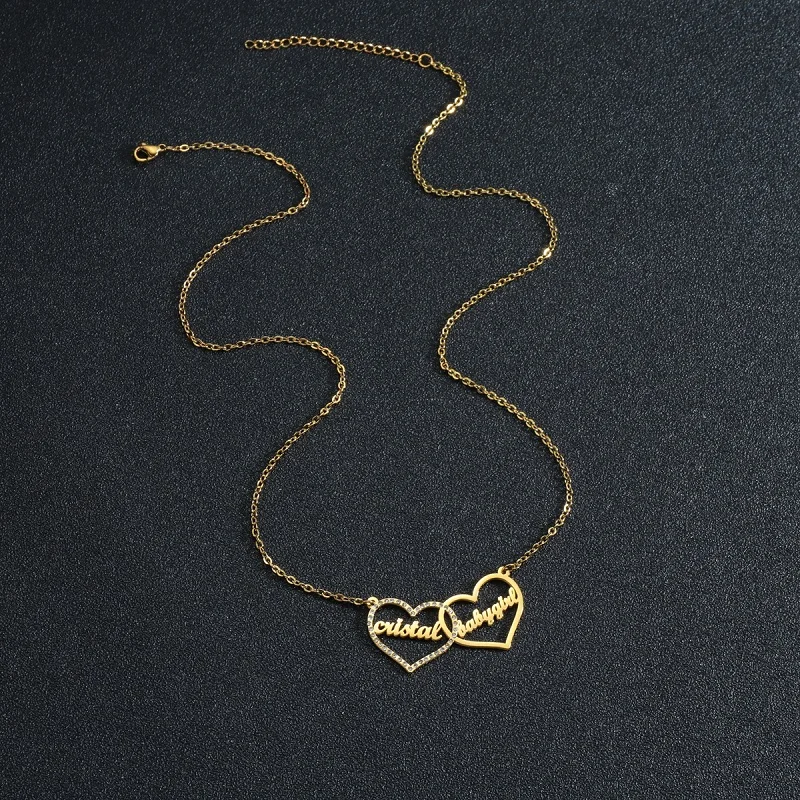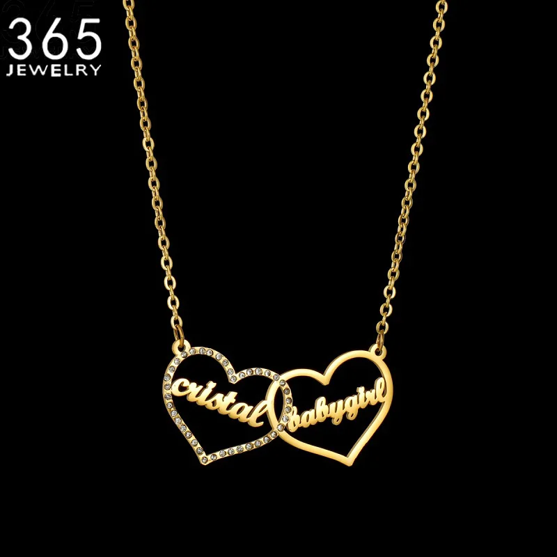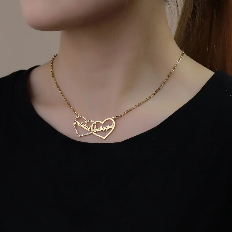 Ожерелье из нержавеющей стали с двумя именами, персонализированное ожерелье с именем сердца, подарок любимой девушке с бриллиантом, окружающая Свадебная бижутерия