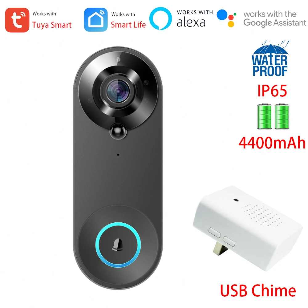 Умный видеодомофон Tuya, 1080P FHD, Wi-Fi, камера Alexa, Google IP65, наружная, 4400 мА ч, перезаряжаемый, с USB-звонком