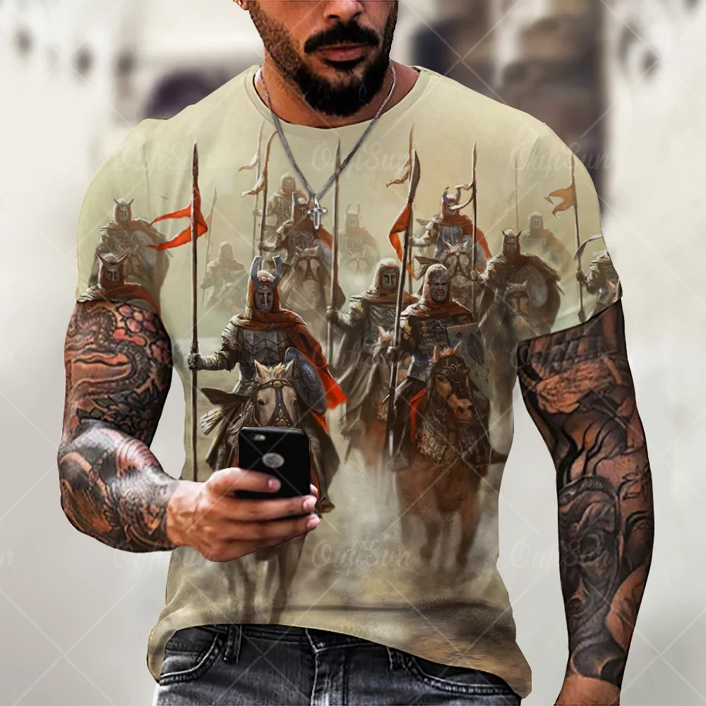 Футболка мужская с 3D принтом, с рисунком самурая, рыцари, темплар, стиль ретро, европейские, американские уличные, короткий рукав
