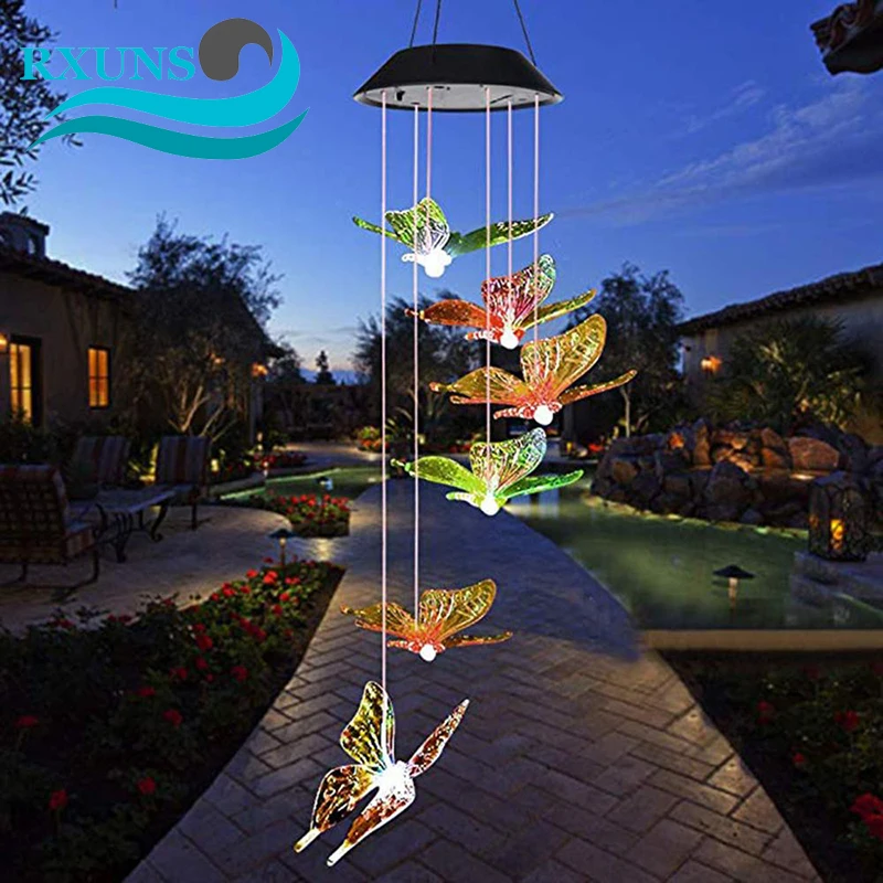 Светодиодный подвесной светильник на солнечной батарее для внутреннего дворика, декоративное освещение для крыльца, сада, дома, с 6 светодиодами, с колибри, с подсветкой в виде бабочки, с изменением цвета, для мобильного телефона