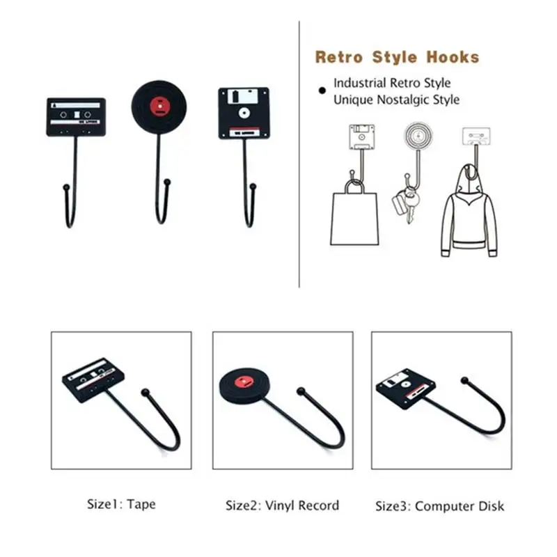 Декоративные крючки, Минималистичная вешалка для виниловых пластинок в стиле ретро, настенные крючки, держатель ключей, пальто крючков для ключей, инструменты для домашнего хранения