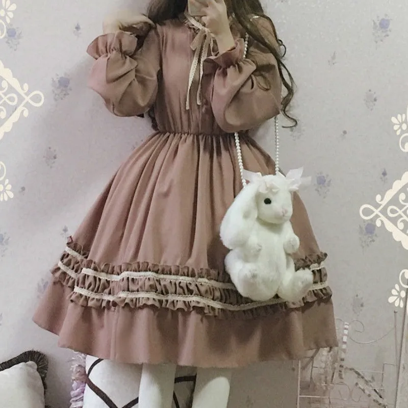2021 японские милые платья в стиле лолита Харадзюку для женщин, винтажные вечерние платья в стиле ретро с бантом, осенние платья y2k