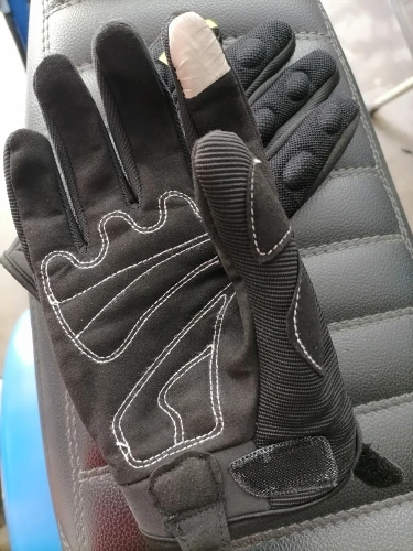 Notes:1. Due to the difference between different monitors, the pictures may not reflect the actual color of the item.2. Compare the detail sizes with yours, please allow 1-3cm error, due to manual measurement.3. Please leaving a message before you give the bad feedback, if the products have some problems.Features:Stylish design and attractive craftsmanship.Ergonomically finger design, improved flexibility and comfortability when riding.The palm reinforcement protects hands from impact and abrasion.Enhanced touch screen features come with two fingers. so that you can touch-sensitive screen and the phone easy to use.Extensive protection on the back of hand with hard fiber shell design, effectively protect your hands from collision.Palm with wearable PUP pad design, attached hand is not easy sliding.Specifications:Material: Microfiber TPU protective adhesiveColor: Black, Green, Brown ,Red,Orange,GraySize: M, L, XL,XXLM(for the palm width about 8-8.5CM)L(for the palm width about 8.5-9.5CM)XL(for the palm width about 9.5-10.5CM)XXL(for the palm width about 10.5-11CM)Due to manual measurement, it's allows 1-2cm discrepancyApplicability: for motorcycle cycling, auto racing, skiing, skating, climbing and other application.Package List:1 * Pair Gloves