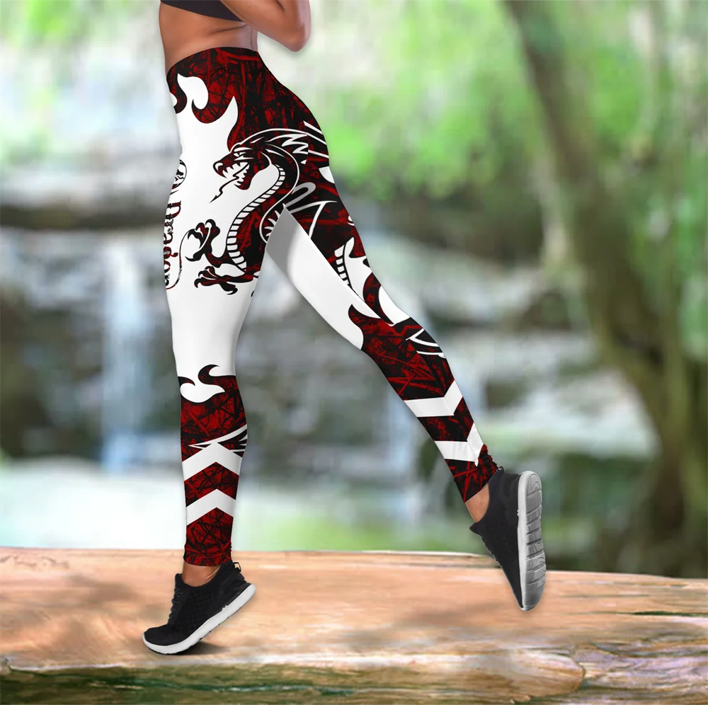 Женские леггинсы, модные комбинированные леггинсы с 3D принтом дракона, красного цвета, с татуировкой, для девочек, майка + леггинсы, сексуальные эластичные женские облегающие леггинсы DDK18