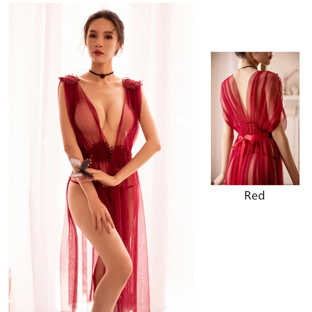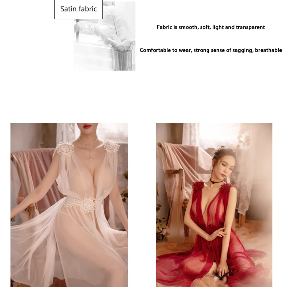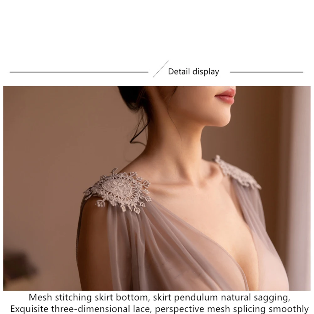 Соблазнительное нижнее белье, соблазнительная сетчатая ночная рубашка, тонкое кружевное нижнее белье на бретельках с V-образным вырезом, кружевное Прозрачное платье, комплекты одежды для сна