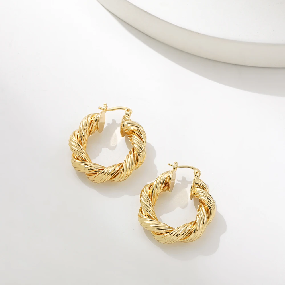 Модные витые серьги-кольца для женщин, большие золотистые металличе...