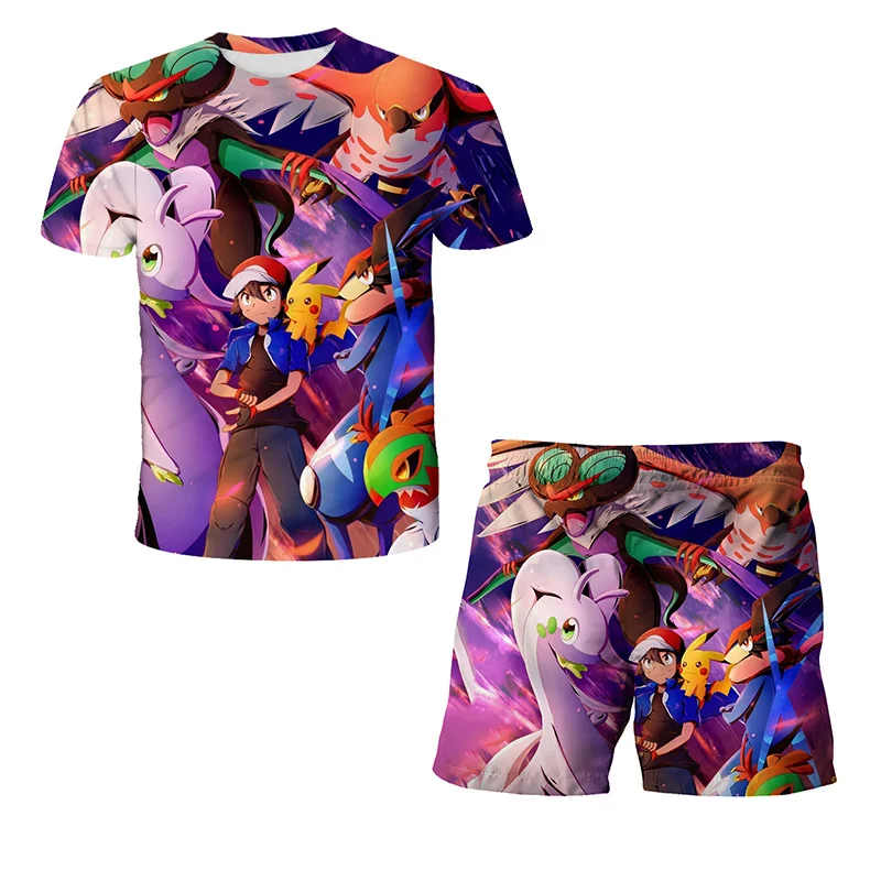 Летняя дышащая детская одежда, футболка с тыкмоном, костюм для мальчиков и девочек, детская одежда, шорты с коротким рукавом 3D, модный мультяшный костюм