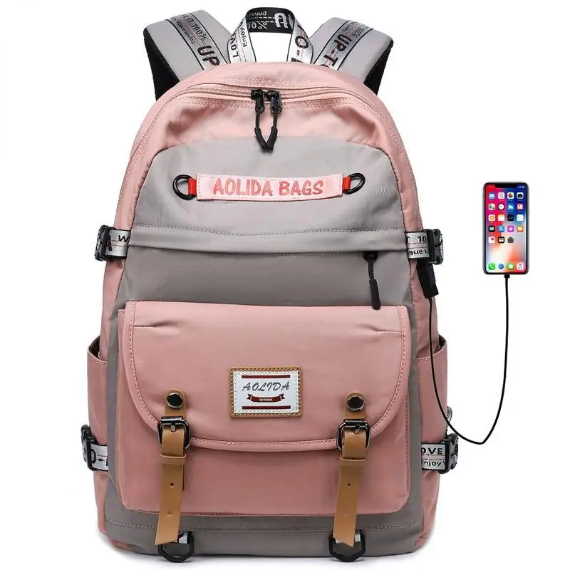 Вместительные сумки для колледжа с USB-зарядкой, рюкзак для девочек, вместительная модная уличная сумка