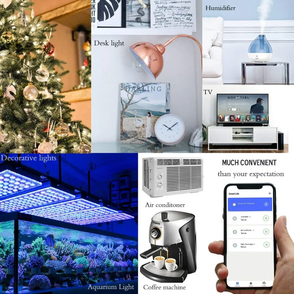Наши смарт-вилки используется для различных устройств и приборов, таких как телевизоры, электрические плиты, освещение общей площади, уличные фонари, мокрого помола, охладители воды, Воздушные Охладители и многое другое. Используйте встроенную функцию таймера обратного отсчета для зарядки мобильных телефонов и ноутбуков и продлевайте срок их службы, избегая перезарядки их батарей.