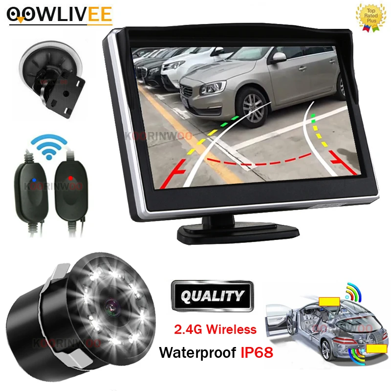 Беспроводной комплект для парковки автомобиля OOWLIVEE, ЖК-дисплей с камерой заднего вида, интеллектуальная светодиодный, светодиодные фонари, HD-камера, бампер, резак