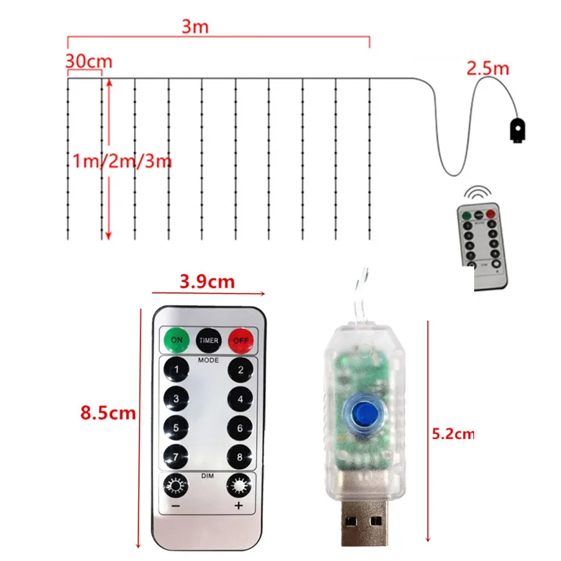 СВЕТОДИОДНАЯ Гирлянда-занавеска, 3 м, USB, Сказочная гирлянда с дистанционным управлением, Рождественское украшение для дома, освещение для комнаты, Декор, новогодние подарки, Рождество