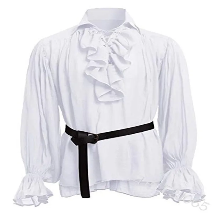 Мужская рубашка с ремнем, белая или черная рубашка с ремнем в стиле эпохи Возрождения, готики, колоний, вампира, Лолита