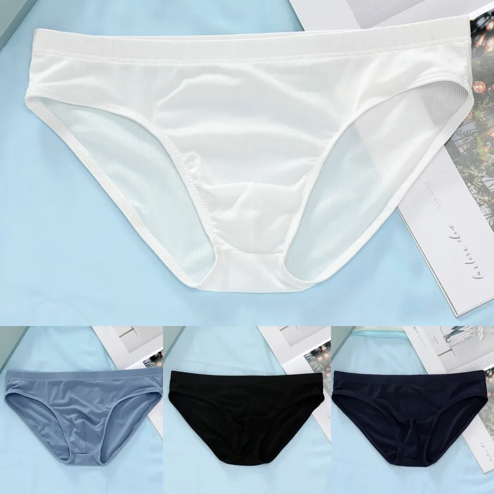 Мужские Соблазнительные трусы с U-образным выпуклым мешочком для пениса, гладкие брифы из ледяного шелка, соблазнительные мужские однотонные Эротическое нижнее белье, нижнее белье