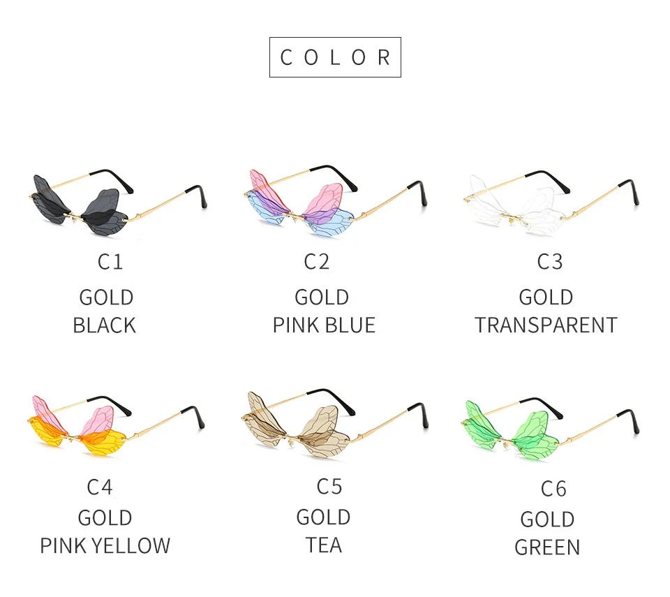 Модные солнцезащитные очки без оправы в форме стрекозы, Женские вин...