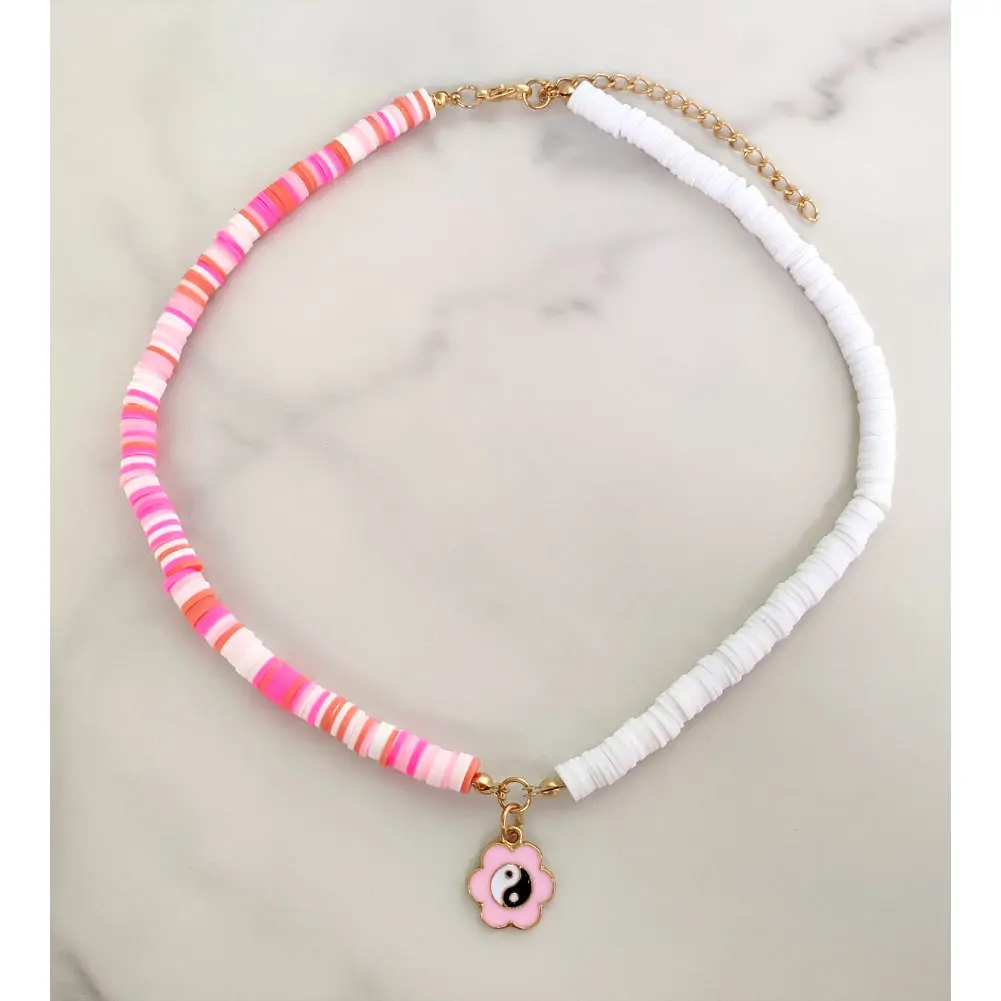 Ожерелье-чокер женское из мягкой глины с цветком Инь-Ян