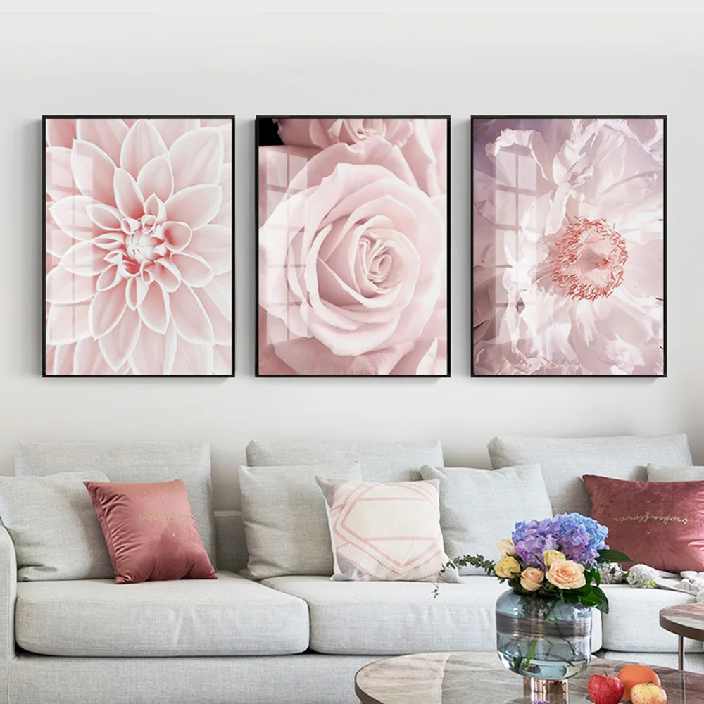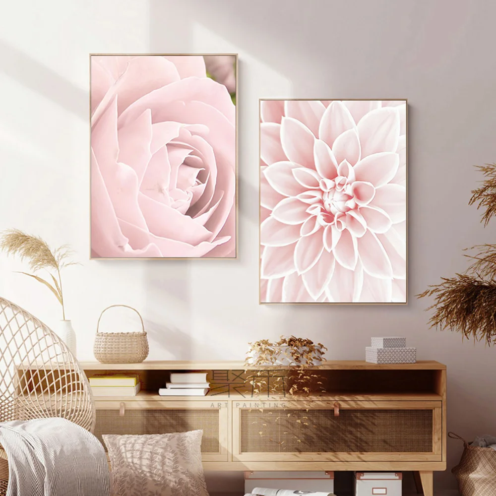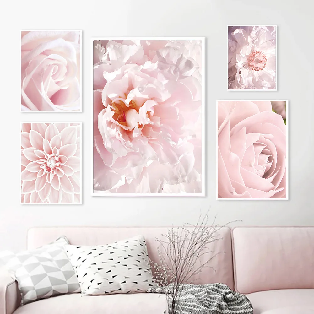 Постер с принтом в скандинавском стиле, розовые цветы, цветение вишни, розовые пионы, розы, холст, настенная рамка для гостиной, художественное украшение