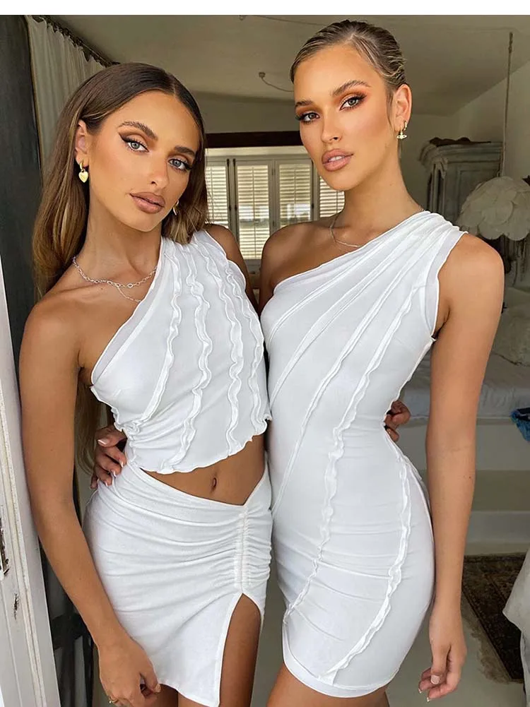 Облегающее платье на одно плечо, короткое вечернее платье без рукавов, соблазнительное женское мини-платье, лето 2021, элегантное ажурное платье, сарафан