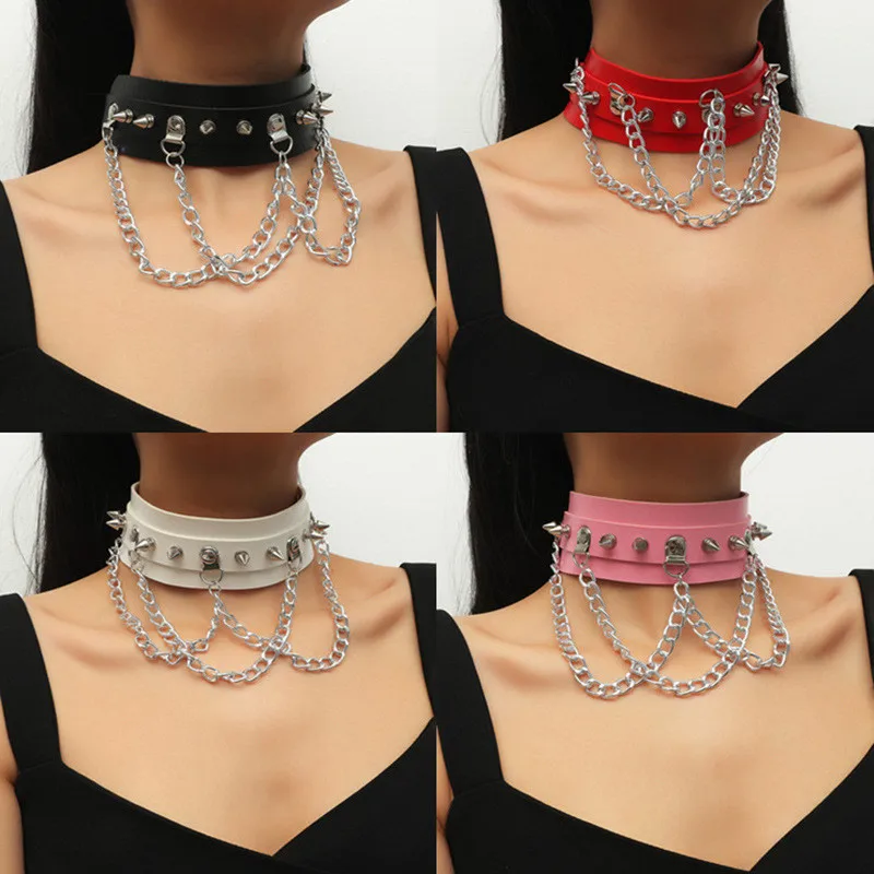 2021 чокер шеи шипы воротник для женщин и мужчин кожаное ожерелье цепи ювелирные изделия на шею панк чокер ожерелье аксессуары в готическом стиле