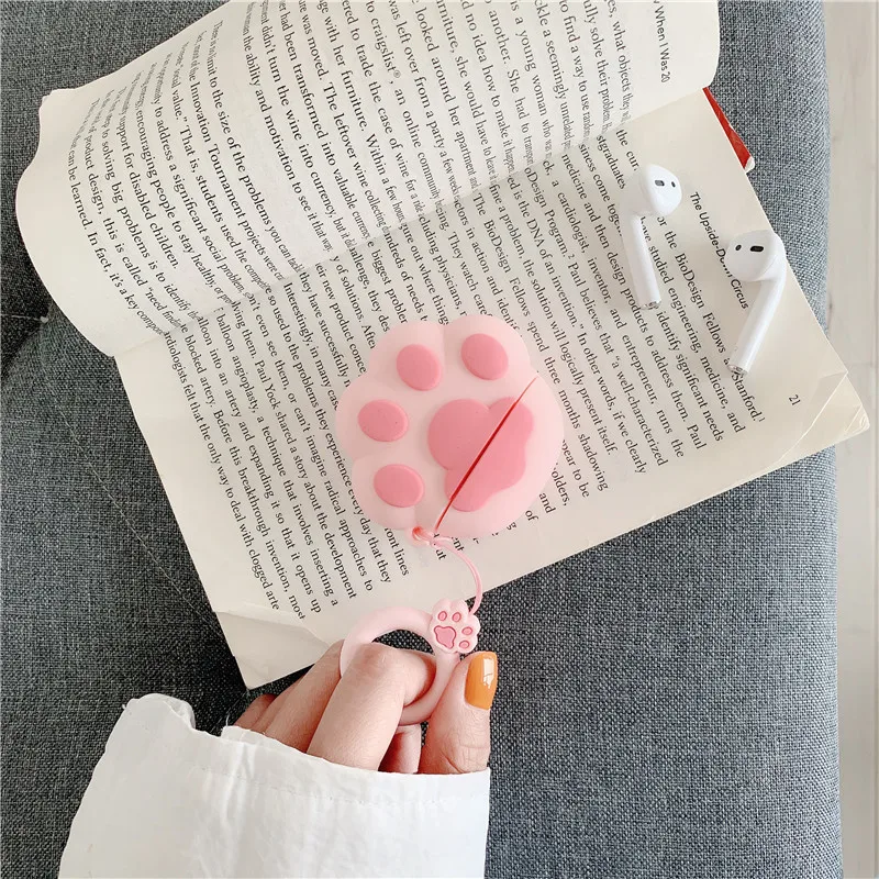 Чехол для Apple AirPods 2 с милыми кошачьими лапками, розовый и бел...