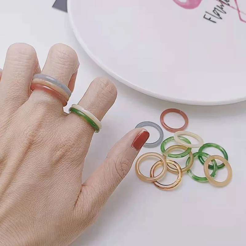Кольцо женское из акриловой смолы, корейский стиль, прозрачное, минималистское, разноцветное, B041