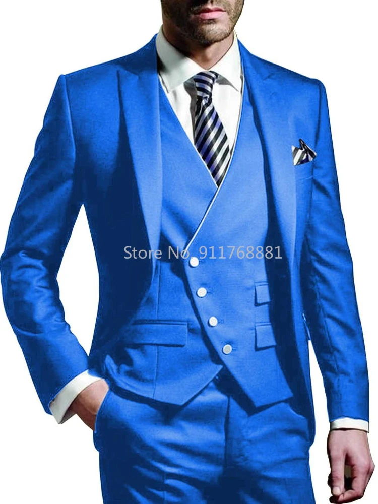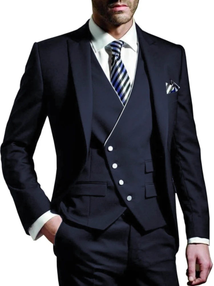 Мужской деловой костюм-тройка, темно-синий пиджак на одной пуговице, пиджак с надписью, жилет и брюки, индивидуальный пошив