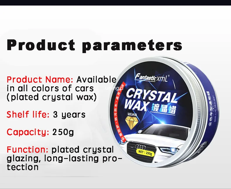 Технология покрытия автомобильных кристалловНа поверхности автомобильной краски для формирования твердого адгезионного слоя, чтобы избежать общего воскового блеска, чтобы поддерживать относительно короткое, сложить больше фруктов, не очевидные проблемы, может эффективно восстановить новый автомобиль, когда эффект блеска, и прослужит несколько месяцев!Сделать автомобиль в любых погодных условиях, может эффективно противостоять кислотным дождям и воздуху, вызванным тяжелым загрязнением окружающей среды в результате эрозии краски автомобиля, сделать автомобильные краски долговечными яркими, как новые!ВодонепроницаемыйЗащита от пылиОсветлениеАроматическиеБыстрая конструкцияДлительное сохранение